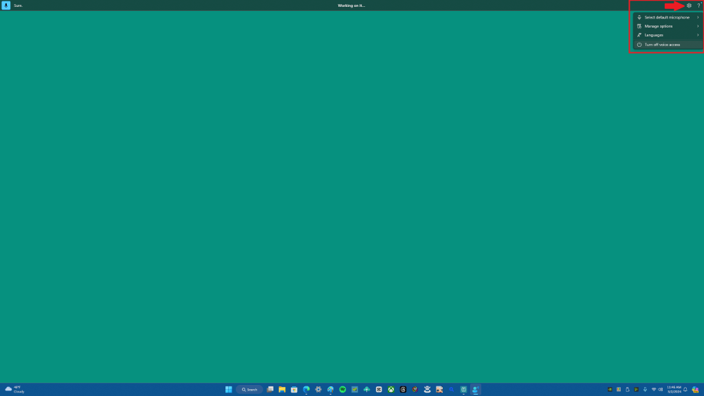 Once you finish with your microphone setup, you can get started using voice access in Windows 11. Remember you can always go back to the settings again by clicking the gear cog in the upper left of your screen or by saying “open voice access settings.”
